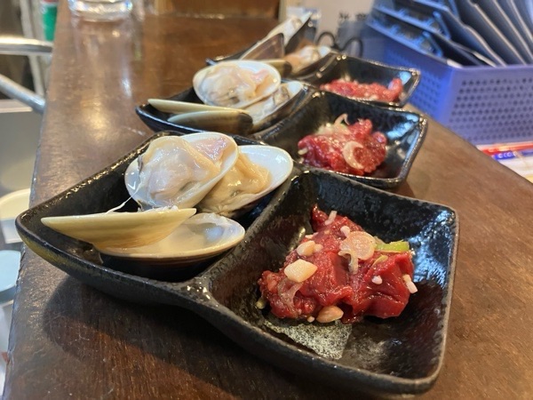 会津馬刺しと桜ユッケのハーフ&ハーフ。