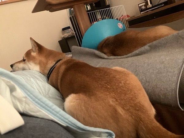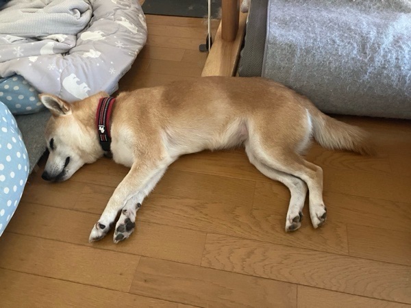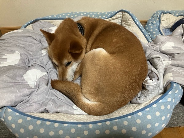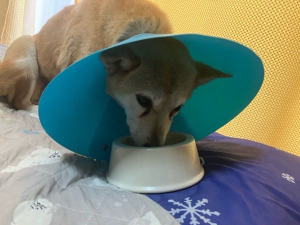 ヒバ子さん、エリザベスカラー気にせず 熟睡でした💤