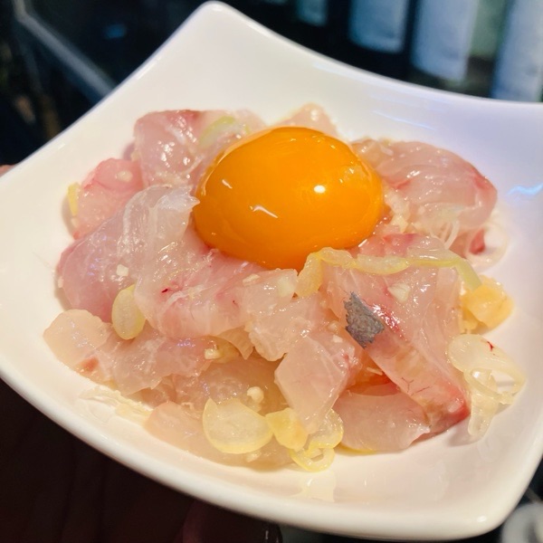 縞鯵の塩ユッケ。