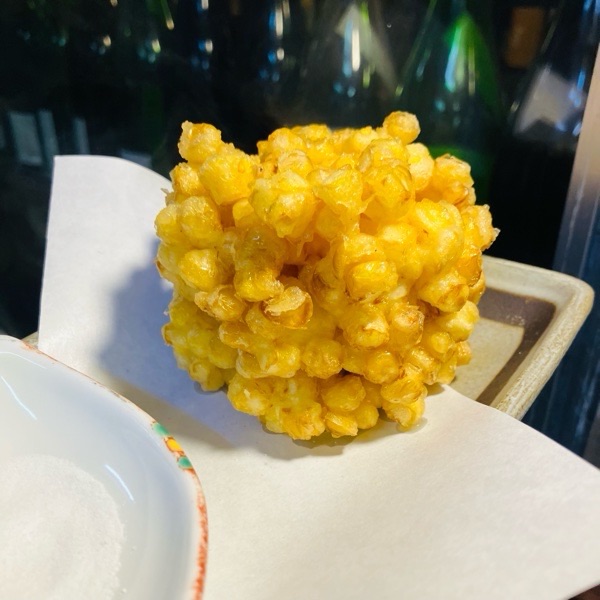 お店の準備へ入りまして、人気者の とうもろこしの かき揚げの仕込み🌽