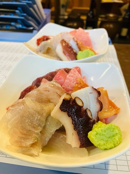 雨も少しずつ弱くなってきまして、無事御予約様が皆御来店となりまして、お刺身盛り。