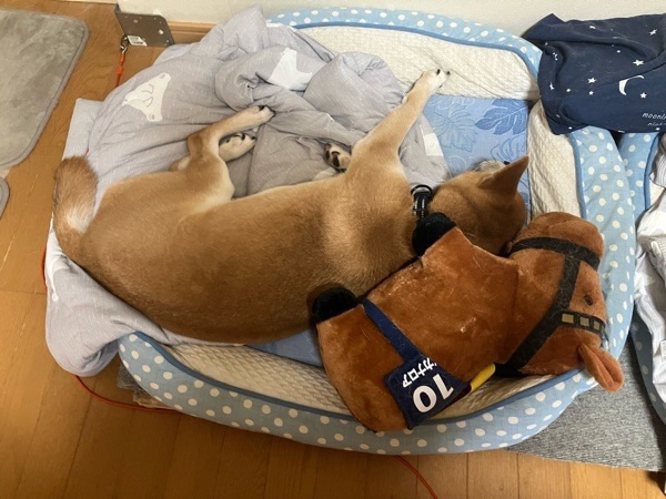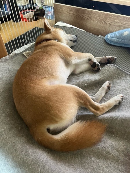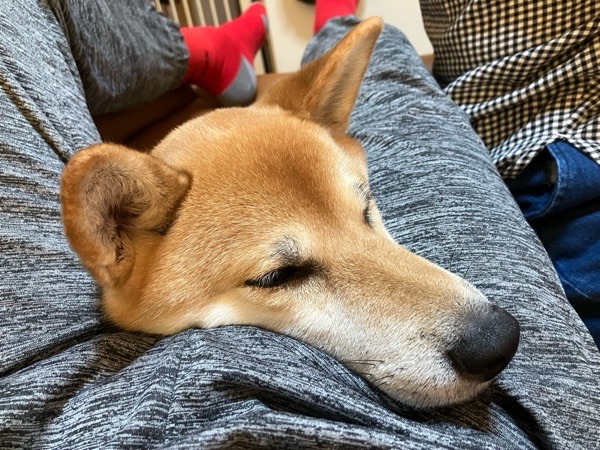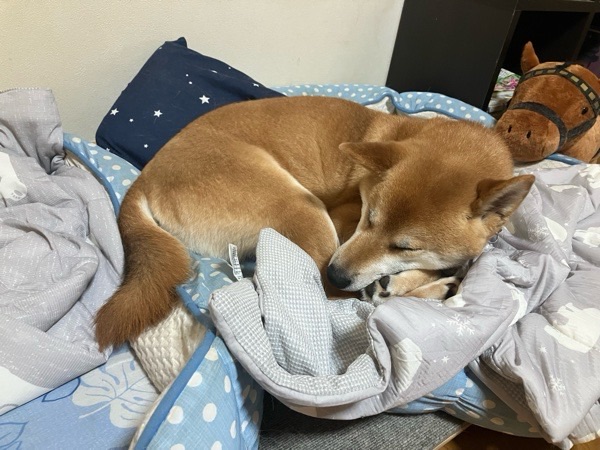 お布団と枕が大好きですので、丁度良いな〜と飼い主を枕に爆睡でございました😪