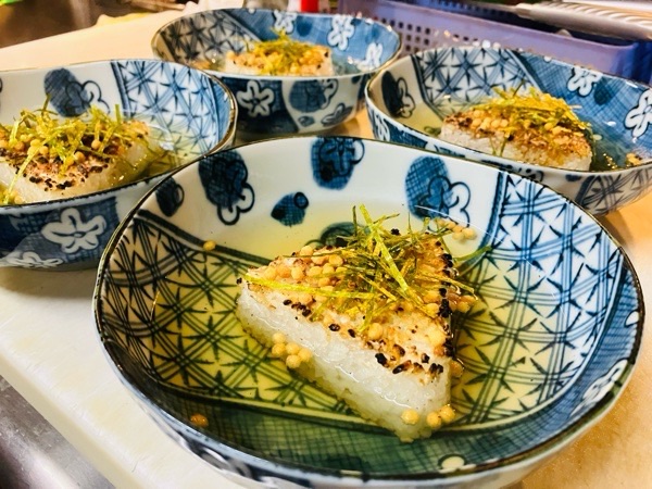 〆タイムは、炭火焼きおにぎり茶漬け。