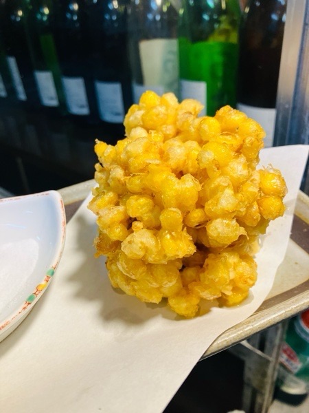 お店の準備へ入りまして、季節ものの とうもろこしの かき揚げの仕込みなど〜🌽