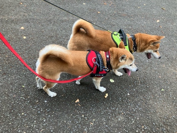 引っ張り合っての競争散歩なので、いっつも ハァハァ💦