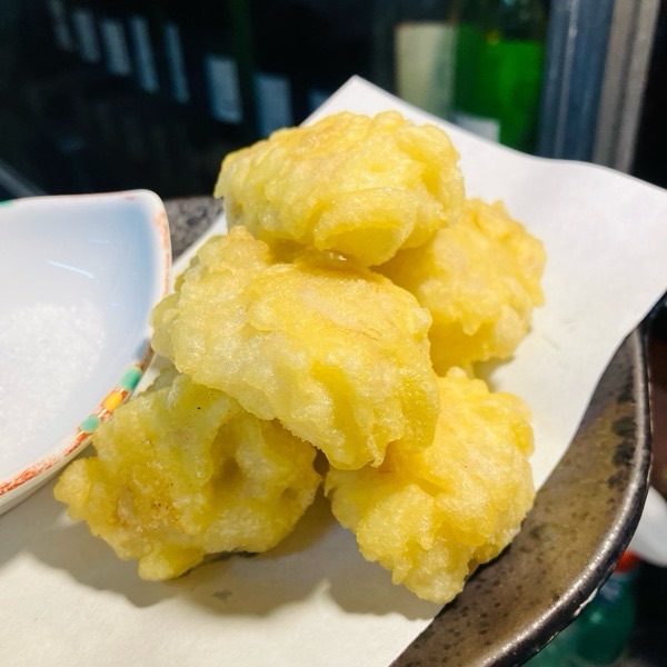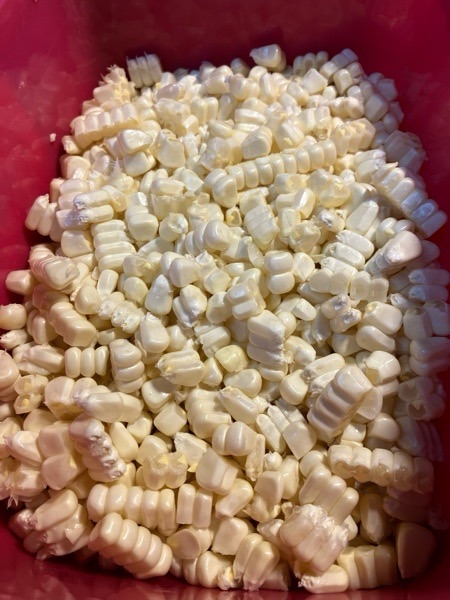 お店の準備へ入りまして、人気の とうもろこしの かき揚げの仕込み🌽