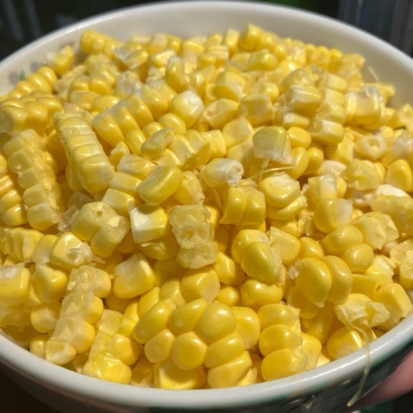 お店の準備へ入りまして、人気者の かき揚げ用の とうもろこしの仕込み🌽