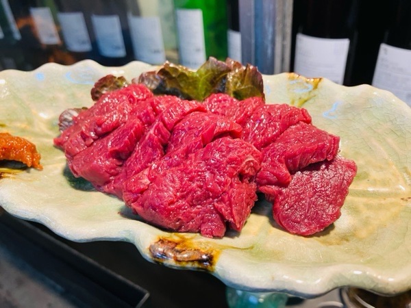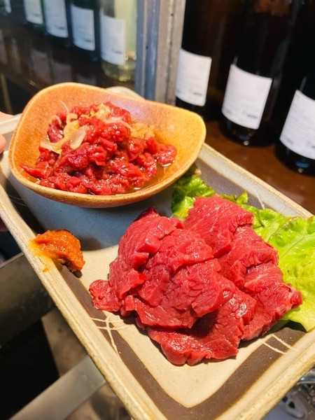 会津馬刺しと桜ユッケのハーフ&ハーフ。