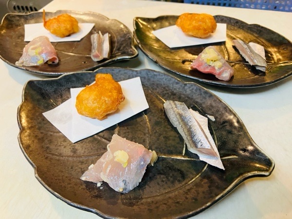 お通しは、鱧の唐揚げ・〆新秋刀魚・汐子の汐子の贅沢仕様でしたー!