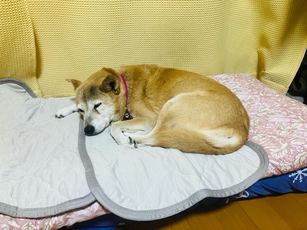 床で寝ていました みるく先生に枕を作って敷いてあげました😅