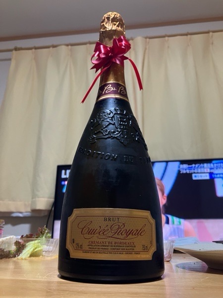 晩酌タイムは、奥様 お誕生日月間突入で、第一弾で いつもよりパワーアップのスパークリングワインで乾杯🥂