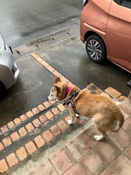 音はビビリですが、雨も水たまりも ヘッチャラなヒバ子さんは、下がビチョビチョでも関係なく 突進でございました😅