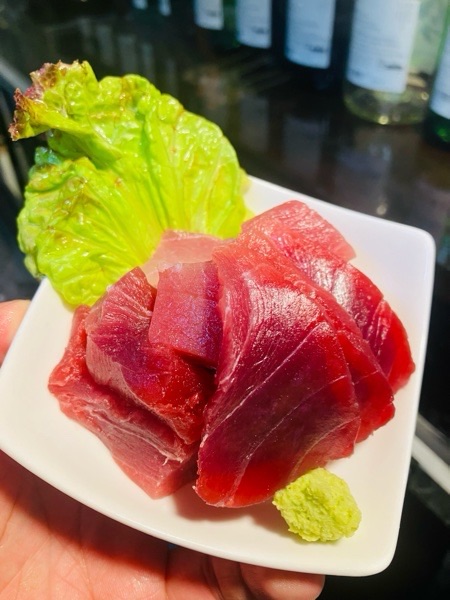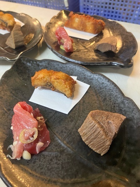 サワラの唐揚げ・牛タン煮込み・中トロ塩ユッケが お通し。