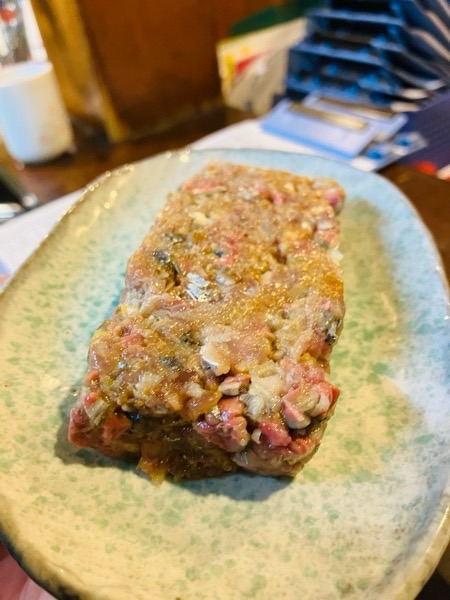 お通しは、牛タン煮込み・マグロの塩ユッケ・馬タタキ。