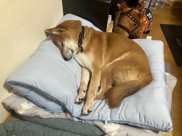 お布団大好きのリリっちょが 自分で上手に、枕使って寝ておりました👏