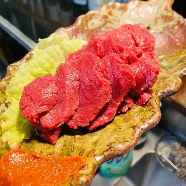 話は夕方 開店前となりまして、馬タタキの仕込み🔥