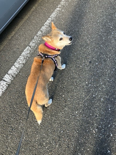 お手手を大きく振りまして、お散歩へ出発のヒバ子さん🎶