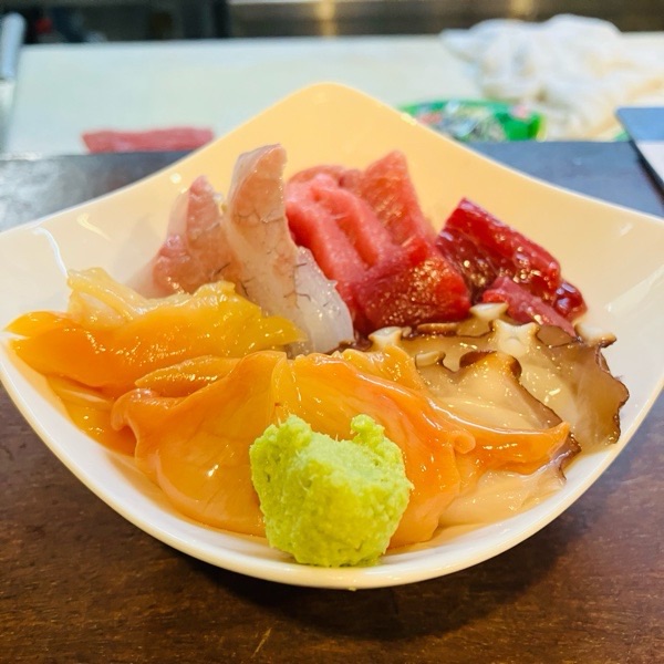 煮牡蠣・馬肉タタキ・マグロ塩ユッケが お通しでした。