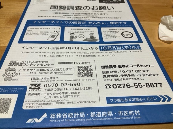 いい加減やらないと…という事で、国税調査をネットでやりました💦