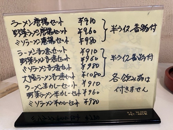 ラーメン➕半チャーハンのメニューが見つけられず… ラーメン唐揚げセット😋