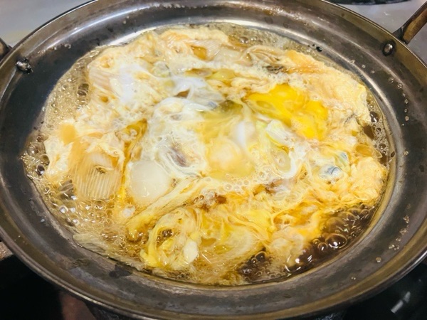 牡蠣と葱の卵とじ。
