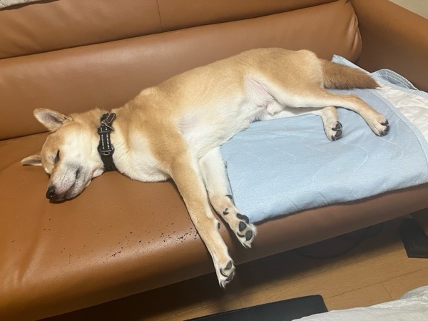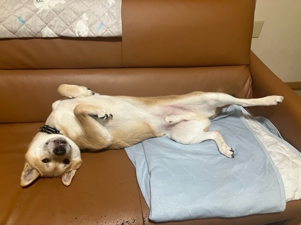 お風呂入って 戻りますと、リリっちょが大きな態度で寝ておりまして😪