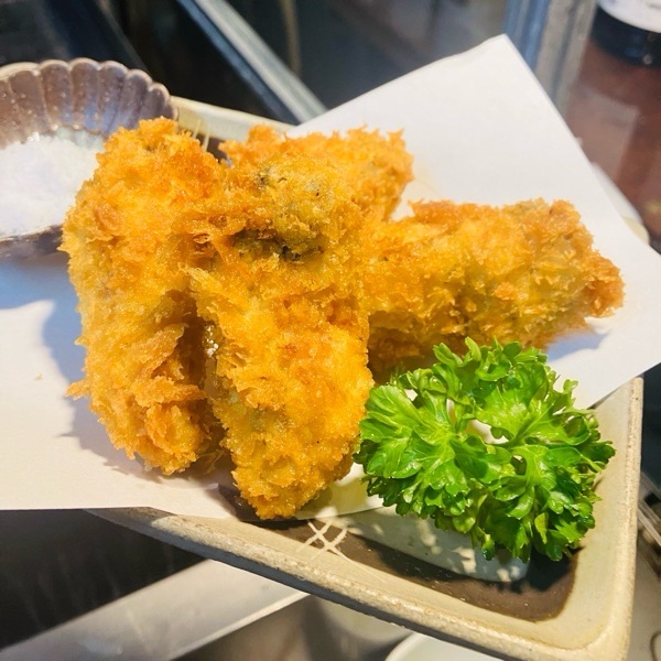 お塩で食べるカキフライ。
