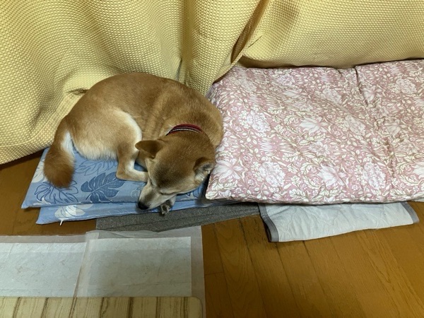 みるく先生、ビバ子さんの お布団の横のサブの お布団で、ビバ子さんの帰りを待ってました😆