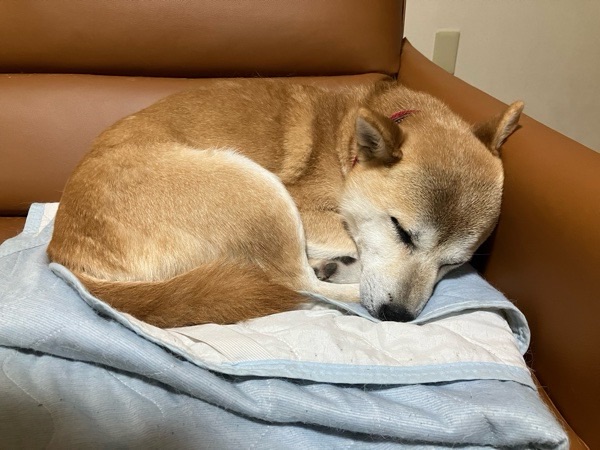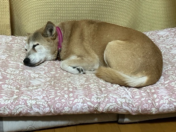 夜は寒くなりまして、丸くなって寝ておりました😪