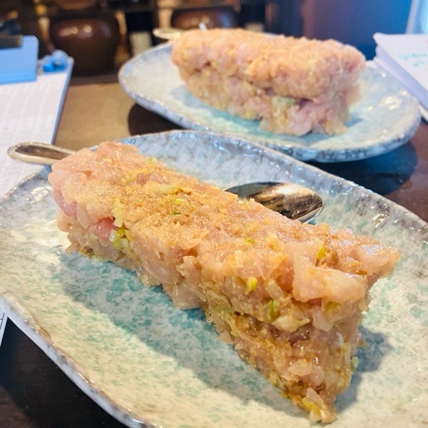 会津馬刺しと桜ユッケのハーフ&ハーフ。