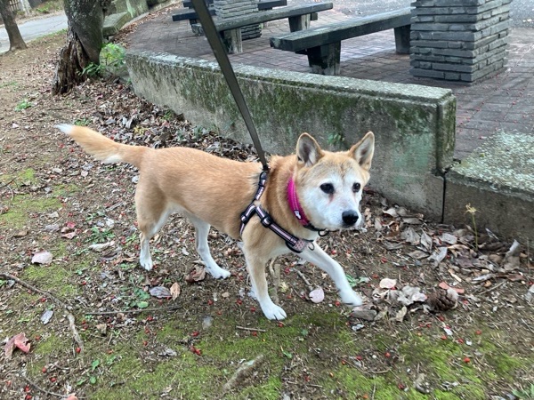 お散歩コースの木も何本か紅葉始まった感じで🍁
