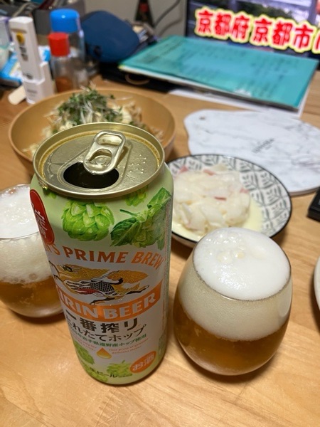 晩酌タイムは、毎年楽しみにしております、一番搾り 採れたてホップ🍺