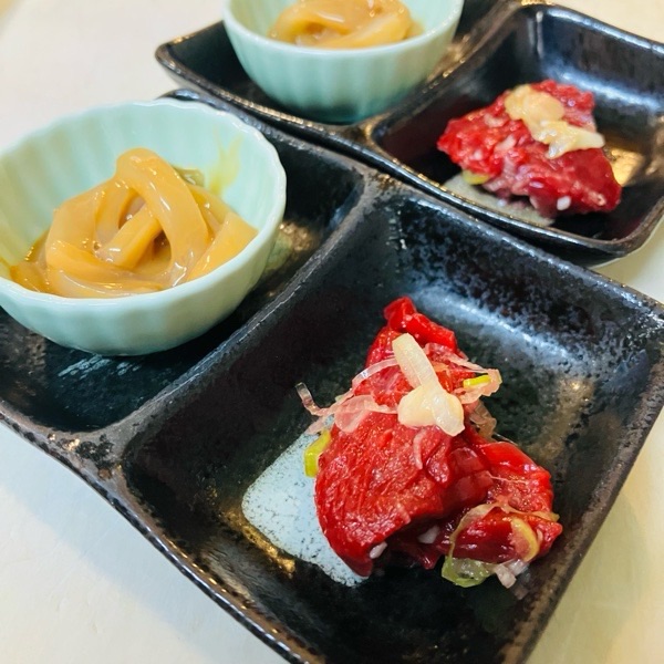 お通しで塩辛出しちゃおう作戦&馬肉塩ユッケの お通し😤