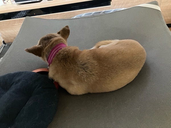 ヒバ子さんは、定位置の瞬ぴぃの畳んだ布団の上ででした😪