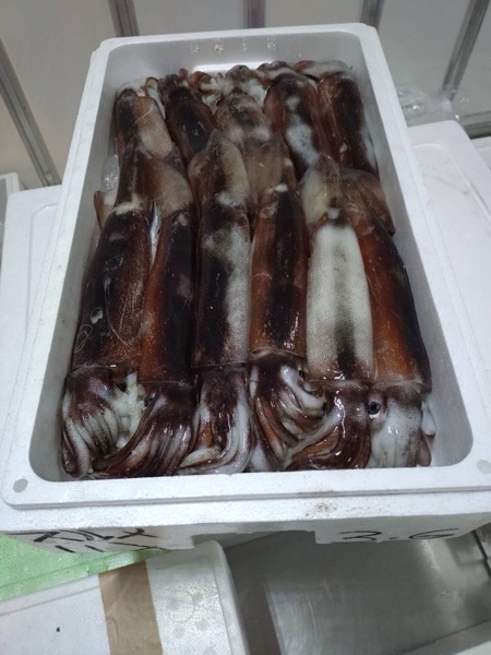 豊洲市場からの入荷は、スルメイカ(月曜日〜の塩辛分)。