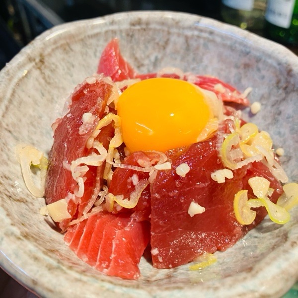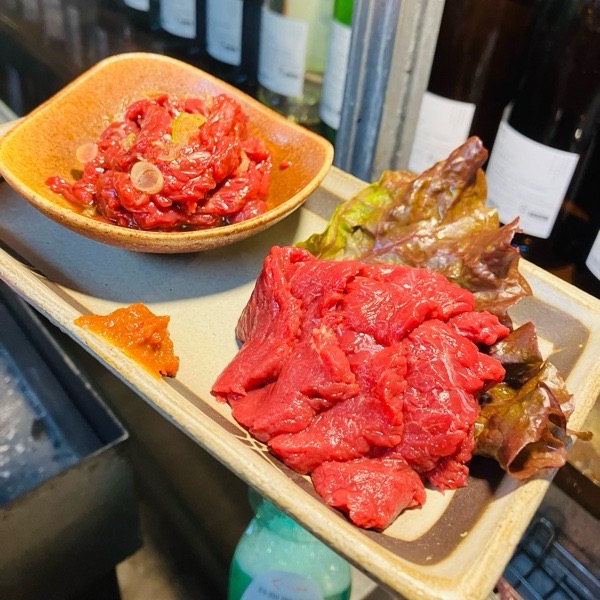 会津馬刺しと桜ユッケのハーフ&ハーフ。