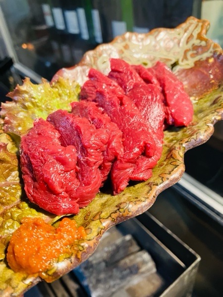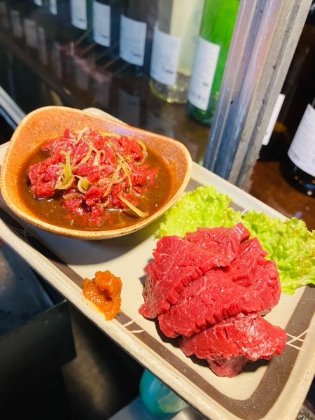 会津馬刺しと桜ユッケのハーフ&ハーフ。