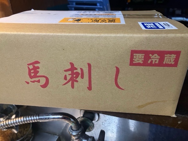 お店の準備へ入りまして、今年最初の馬刺しが到着ッ♪( ´θ`)ノ