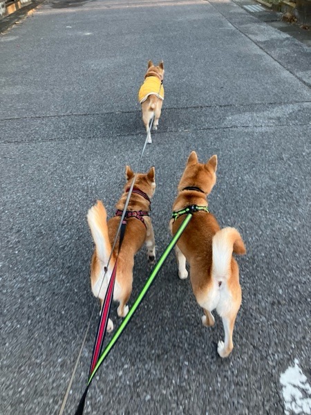 ヒバ子さんが若返りまして、ワッチャカ兄妹と同じペースで お散歩出来ますので、2回に分けていた散歩が1回で住むように⤴️