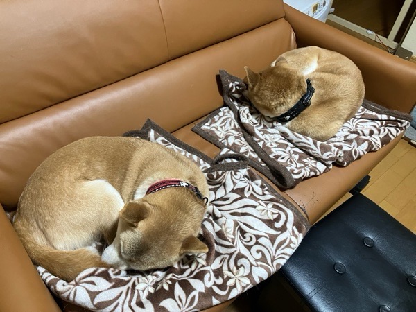 帰宅しますと、最近の流れ通りで ワッチャカ兄妹がソファーで爆睡😴