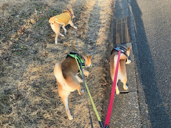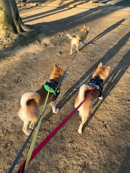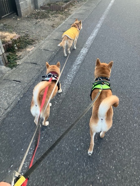 ヒバ子さんが先頭なので、ボスが行く道をワッチャカ兄妹が追いかけるスタイル🐕