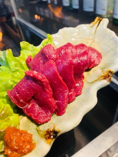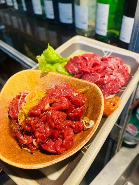 会津馬刺しと桜ユッケのハーフ&ハーフ。