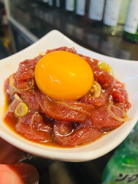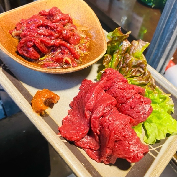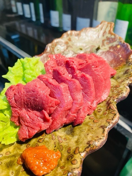 会津馬刺しと桜ユッケのハーフ&ハーフ。
