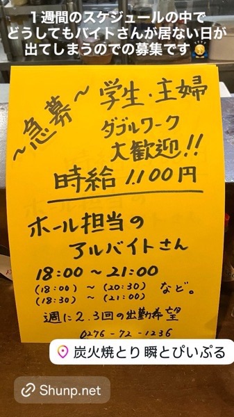 再度、アルバイトさんの募集でございます。