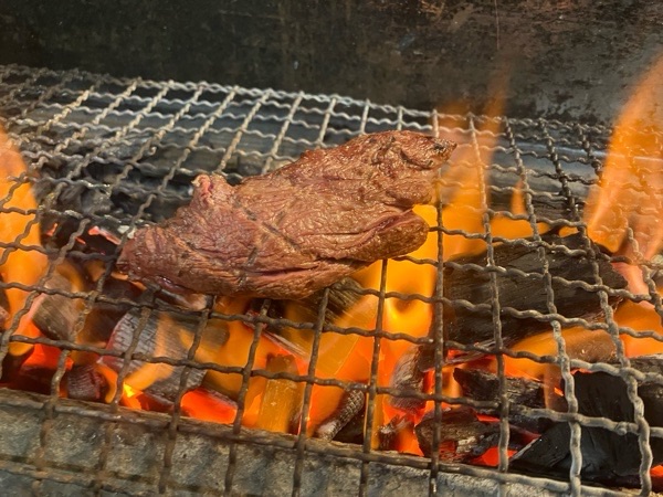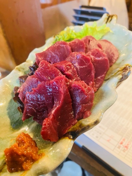 話は夕方となりまして、開店前に馬肉タタキの仕込み🔥
