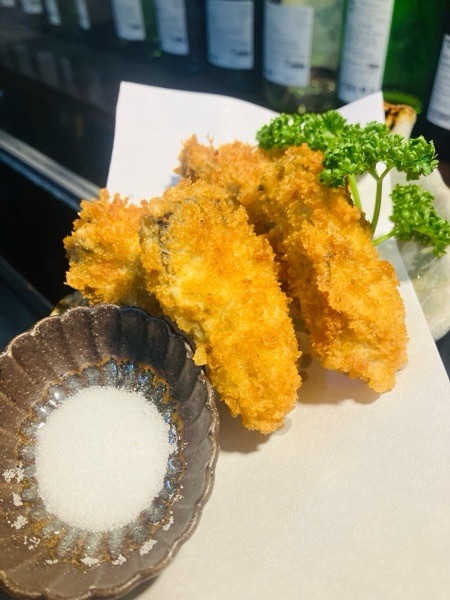 お塩で食べるカキフライ。