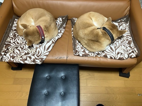 ちなみに、ソファーはワッチャカ兄妹が使いますので、飼い主は 四角い補助椅子でございます🤣