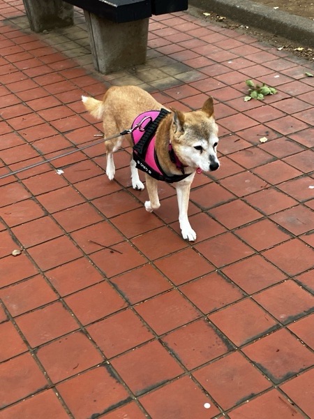 裸ん坊となりましたので、ヒバ子さんも お久しぶりに ハーネス装着で出発ッ🐕