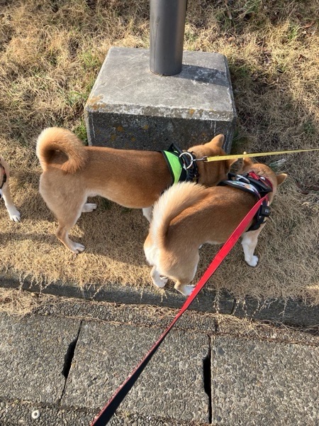 帰り道には、結局お互いが気になりまして、ワッチャカ兄妹クンクンでした😅