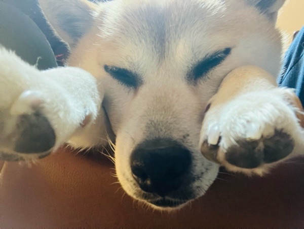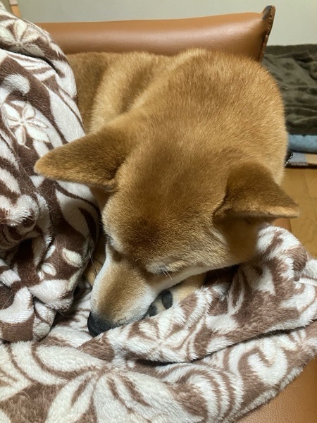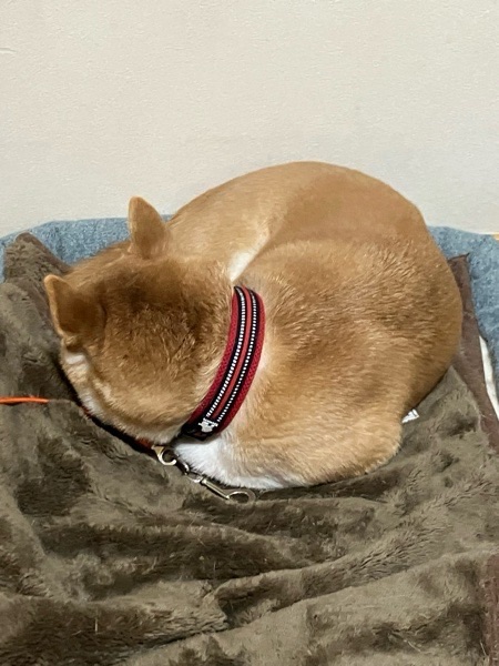 風吹く中の お散歩で 体力使ってくれたのか、ご飯食べたら 大人しく夢の中でごさました(@ ̄ρ ̄@)